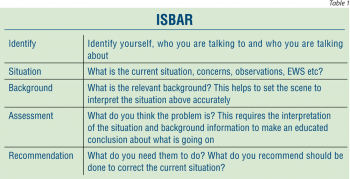 The Acute Medicine Programme has proposed that the ISBAR tool be utilised as the model that all healthcare staff use to structure clinical communication. This tool is a slight adaptation of the SBAR tool, which was developed in the US navy for standardising important and urgent communication in nuclear submarines. It is well established in many settings, including aviation and some acute medical environments, and encourages staff to gather the appropriate information and provides a framework for organising this information in a clear and concise format (see Table 1).