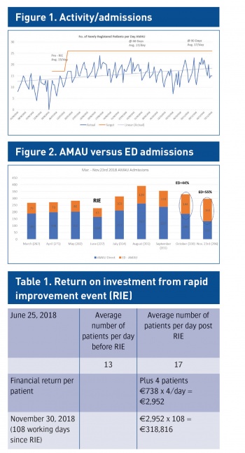 A report on a rapid improvement event in one AMAU which aimed to increase patient flow through the department and improve patient experience time in accordance with the National Acute Medicine Programme