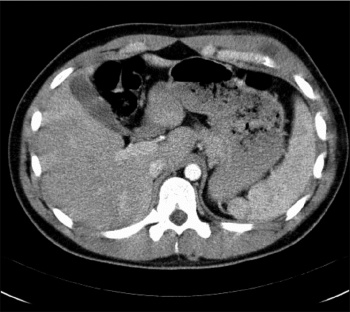 After a week’s course of antibiotic therapy, the patient continued to spike temperature and repeat ultrasonography showed no change.