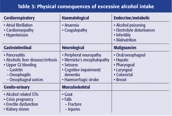 There is a large number of conditions to which alcohol is a contributory or causative factor. The most common of these are listed systematically in Table 3.