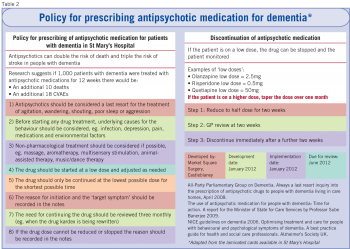 This audit shows that by implementing a policy on initiation and regular review of antipsychotic medication, prescriptions can be significantly reduced.