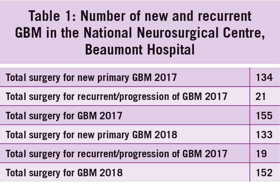 Primary brain tumours remain a significant challenge for physicians. They represent a life-changing event for patients and families. Glioblastoma (GBM) is the most common primary brain malignancy, accounting for 45.6% of all cases. The incidence rate is 3.19 per 100 000 and the median age of diagnosis is 64 years.1 It is responsible for 2.5% of all cancer deaths and is the third highest causes of death from cancer in the 15-34 year age bracket.2