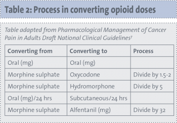 Conversion tables are available of opioid equivalencies. These conversions are a guide only and doses may vary for individual patients.