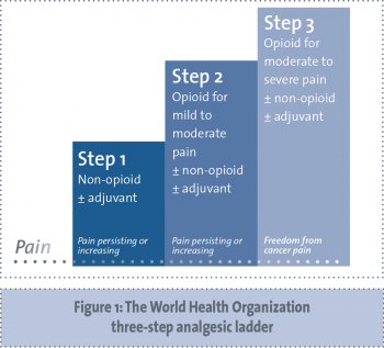 The WHO Analgesic Ladder for cancer pain was developed in the 1980s. This framework forms the guideline for an approach to cancer pain management for both adult and children. In 2012, this was revised by the WHO from a three-step to a two-step approach for pain management in children with persisting pain, including children with cancer pain. Key points include: