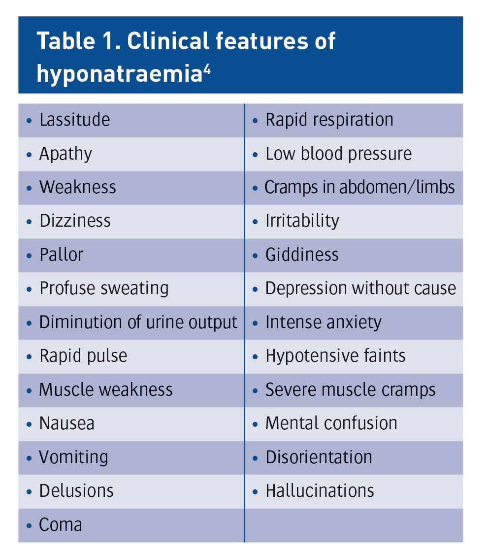 A checklist of symptoms of hyponatraemia was developed, based on clinical descriptions of the condition.4