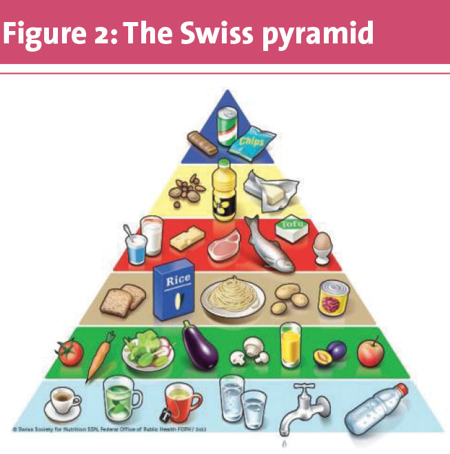 Many changes to the portrayal of dietary models have also been seen in Europe in recent years. A number of countries including Switzerland,5 Belgium,6 Latvia,7 France,8 and Germany,9 along with many others, have included water and fluids in their new food pyramids. Many of these, for example Belgium,6 have made it the new base of their pyramid.