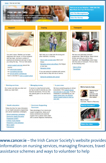 The rising number of cancer patients needing cash support for necessities prompted the Irish Cancer Society to publish a booklet on how to manage the financial impact of cancer, which gives details of social welfare supports and other benefits. It is available on the Society’s website www.cancer.ie, as are details of the Financial Aid Scheme (max once-off payment €1,000; average payout of between €350 and €500).