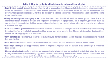 Alcohol use in those with diabetes and the potential risks of hypoglycaemia and how to avoid them