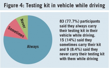 • A total of 83 participants always carry their testing kit in their vehicle while driving; 21 of these participants were over 40 years compared to 62 under 40