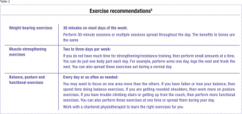 As the human body inevitably advances toward old age, it is becoming more evident that exercise in the form of strength training and weight-bearing activity are providing the answers to slowing age-related changes in bones and muscles.1 See Table 2 for exercise recommendations.5