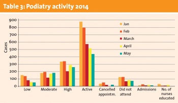 And while Dr Canavan admitted that this reduction in bed days (see Table 2) may not be only due to the implementation of the foot care model, the ‘silver lining’ is still that now patients are being discharged to services where they have a foot protection team and specialist podiatrists ready to see the patients.