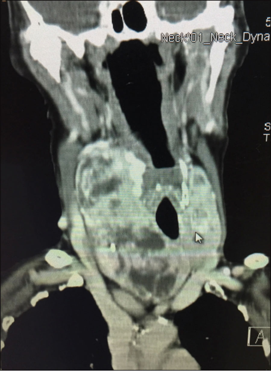 Figure 2. Large well differentiated thyroid cancer in the setting of a multinodular goiter(click to enlarge)