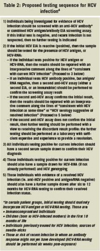 Screening guidelines offer an assessment of the evidence on whether screening should be offered to various groups and examine the available evidence for and against.4 These groups include pregnant women, children born to mothers with HCV infection, household contacts of someone with HCV infection, those abusing non-injectable drugs, prisoners, donors of blood, tissue or organs and healthcare workers.