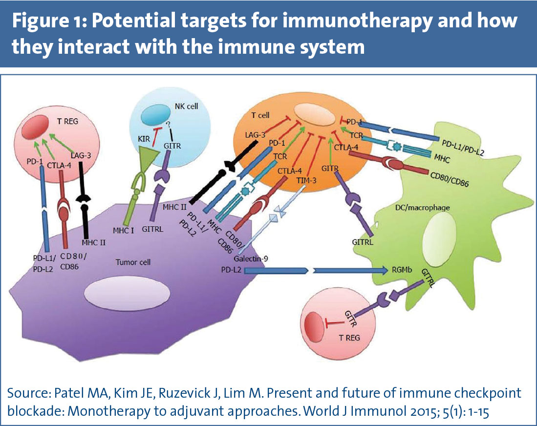 Other immune checkpoints that could potentially be targeted include LAG-3, TIM-3 and KIR. Co-stimulatory regulators can also be agonised, these include OX 40, GITR and 4-1BB (see Figure 1).24
