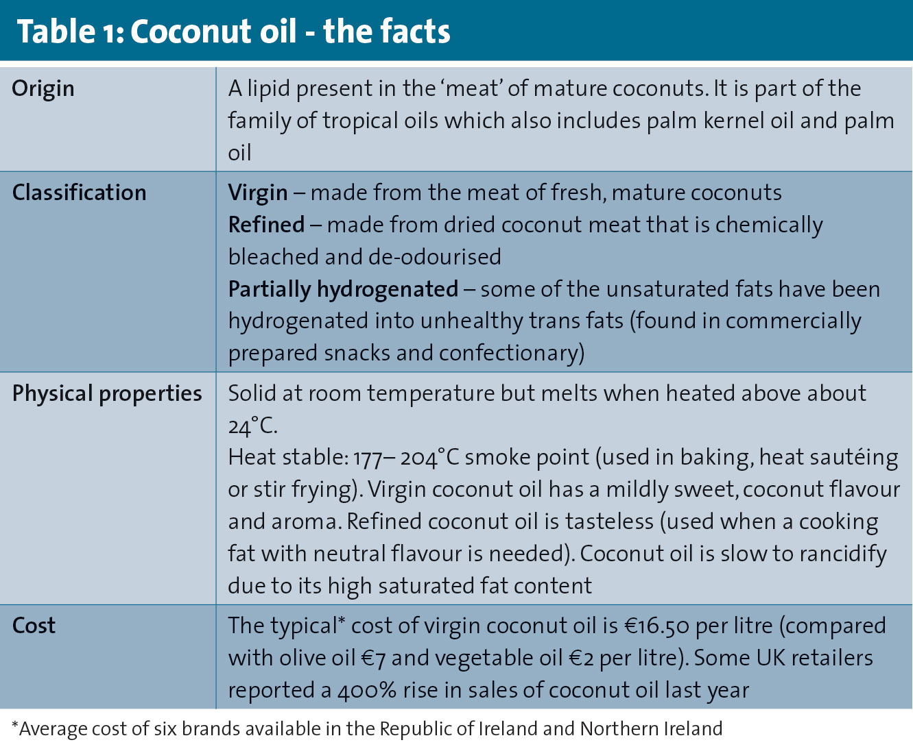 It's hard to ignore the ever-growing popularity of coconut oil, which is heavily promoted through websites, magazine articles and endorsements by celebrities, to name but a few.
