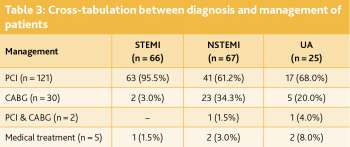The management of UA patients can also be seen in Table 3, which posits that re-audits are necessary during lipid-lowering therapies while seeking secondary prevention.7 Moreover, this enhances constant evaluation for improvement in the centre’s performance and standards of care.