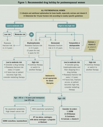 In a paper published in the Journal of Clinical Endocrinology and Metabolism, March 2019,14 HRT or tibolone is recommended in those women with vasomotor symptoms where bisphosphonates or denosumab are not appropriate