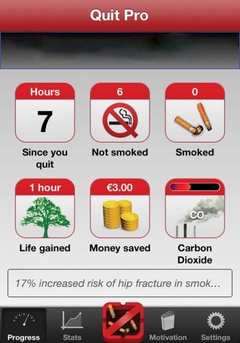Apps, such as ‘Quit Pro’, which is free to download, help you to by keeping you motivated, monitoring your progress, showing you the money you are saving and the benefits to your health as you cut down and give up entirely.
