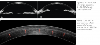 Additionally, AS-OCT is detailed enough to enable visualisation of the microscopic corneal stroma and flap in treatment planning for corneal refractive procedures such as LASIK (laser in si tu keratotomy )30(see Figure 13). Its uses are constantly progressing with current investigation into the technology’s suitability in assessing tear film in dry eyes, contact lens fit, and measuring corneal power in post-operative LASIK patients awaiting cataract surgery.