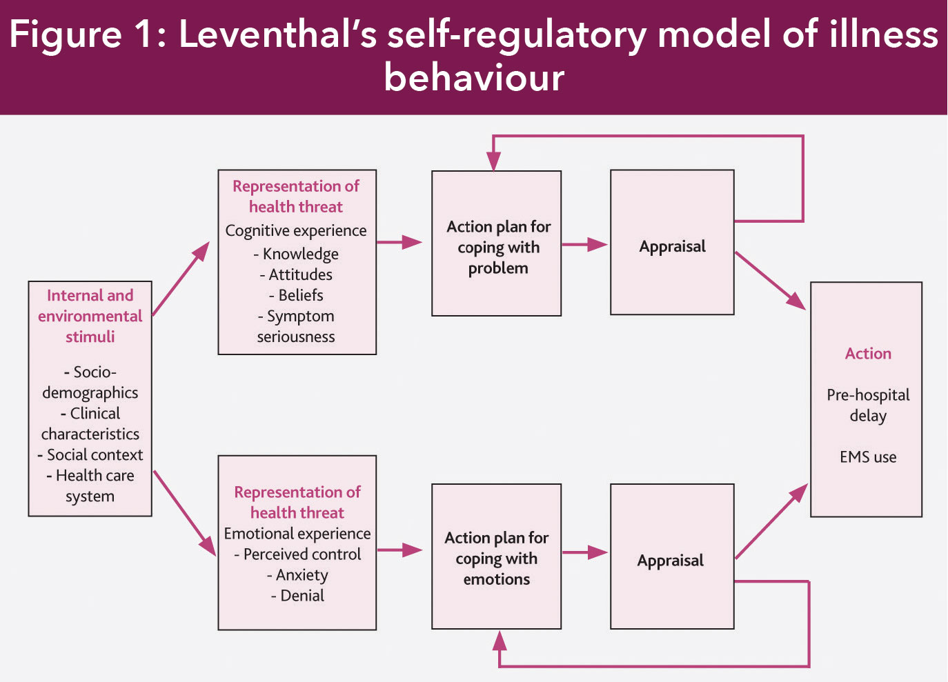 The intervention addressed informational, emotional and social factors as these are the variables that are known to influence pre-hospital delay time. These three factors mirror Leventhal’s cognitive, emotional and environmental components of the self-regulatory model of illness behaviour.