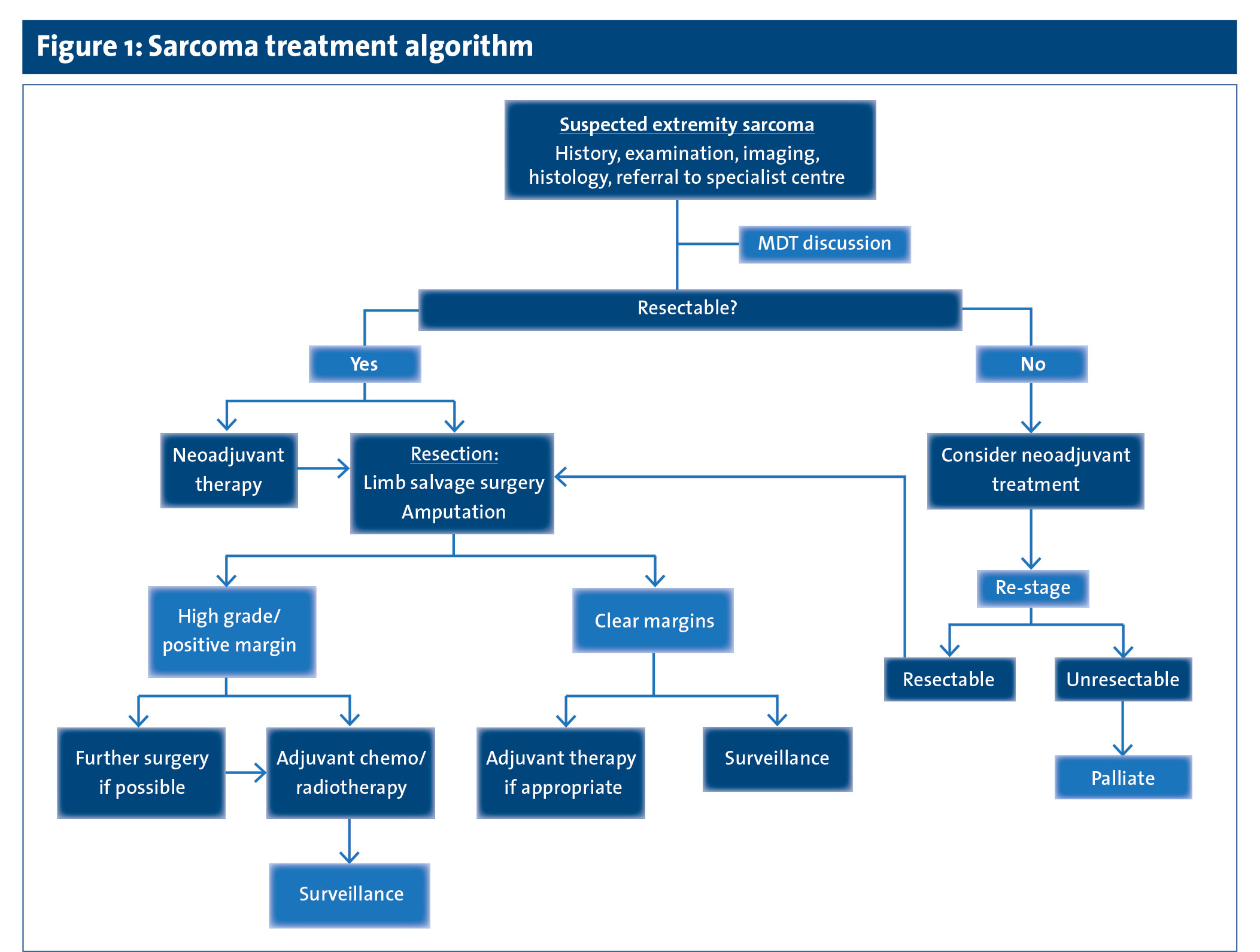 All suspected sarcomas should be promptly referred to a specialist centre where sarcomas are dealt with frequently (see Figure 1).