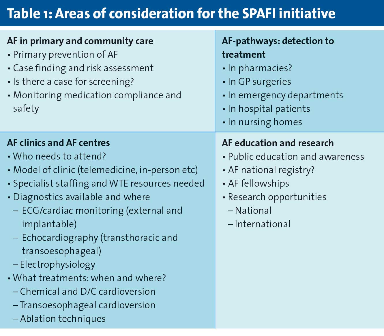 Addressing these areas needs broad specialty expertise, and SPAFI has put together a steering group of cardiologists, geriatricians and stroke physicians, GPs, public health doctors, pharmacists, health economists and nurses (ANPs and research) with an interest in AF, to focus on relevant areas of expertise and underpin a national approach to AF with a clear and economically articulated strategy.