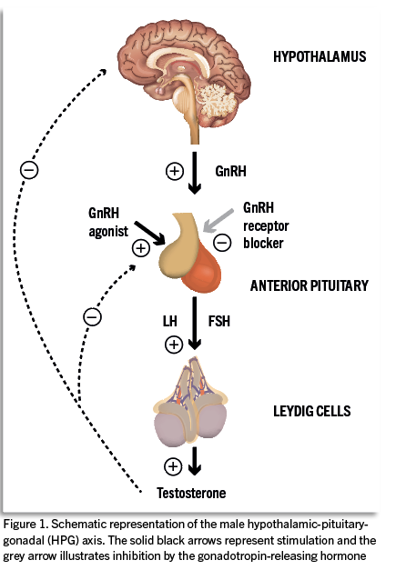 See Figure 1 for illustration of the male hypothalamic-pituitary-gonadal (HPG) axis. Classical testosterone deficiency can be further subdivided into primary, secondary and combined primary/secondary causes. Primary hypogonadism occurs when there is a direct problem with the testes, such as in Klinefelter syndrome, or acquired for example, following chemotherapy.