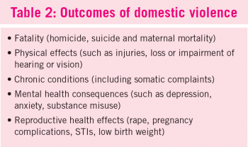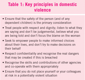 Domestic violence may result in physical injury, chronic physical ill health and/or emotional and mental health difficulties. It may result in death. Women are more likely to disclose violence to their GPs than to any other professional group. Therefore, the initial response of the GP is of profound importance (see Table 1).